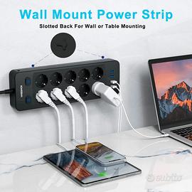 Nveeshox 10 Prese Ciabatta Multipresa(4000 W/16A) con 4 USB-A,Presa Multipla Salvaspazio, Multipresa con Interruttore Indipendenti, Ciabatta Elettrica Protezione Sovratensione,2M Prolunga (Nero)