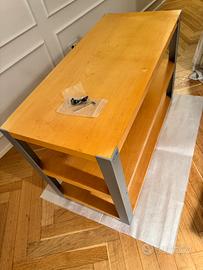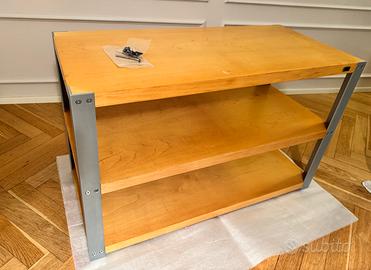 Tavolino porta elettroniche Music Tools Alica in essenza acero, largo 100 alto 63 cm con tre ripiani. Puó ospitare sino a sei elettroniche di dimensioni standard. In dotazione punte originali. Listino attuale 1600e. Qualche segno e scolorimento che non ne compromettono l’uso. Visibile a Milano.
