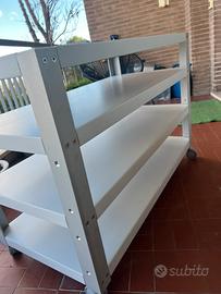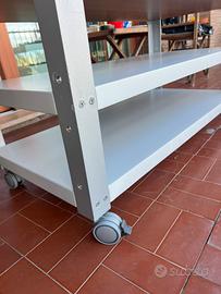 Vendo mobile porta elettroniche Music Tools modelll Alica, larghezza 1 metro profondita’ 46 cm, altrzza da terra 63 cm con ruote 69, laccatura satinata grigio pastello codice RAL 7035 la parte inferiore dei ripiani e’ ciliegio satinato, misure nette dei vani; primo e secondo dal basso entrambi 16 cm, terzo 12 cm. Completo di kit ruote e sottopunte euro 550 piu spese di spedizione NON accetto pagamento tramite subito.it esclusivamente Bonifico Bancario o PayPal grazie