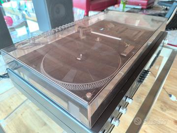 Hi-Fi stereo music center made in Germany. Testato per quanto possibile con i seguenti risultati: ottima amplificazione; ottima ricezione radio, preselezioni funzionanti, vu meter signal e led stereo a posto; piastra a cassette funziona correttamente, apertura dello sportellino da pulire perché lenta; giradischi operativo anche negli automatismi, presente testina originale, ma manca puntina (DN221) reperibile in rete a partire da 20€; cappa protettiva integra, con una lucidata torna come nuova; 2 LED non si accendono.
