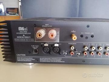 Vendo magnifico amplificatore Musical Fidelity M6SI . Completo di doppio imballo, propria custodia in velluto, istruzioni, telecomando. Secondo proprietario. Perfetto, unico piccolo segno su manopola volume. Potenza: 220 Watt per canale su 8 Ohm. i Tutte le caratteristiche e prestazioni si trovano tranquillamente in internet. Zona Verona - No spedizione.