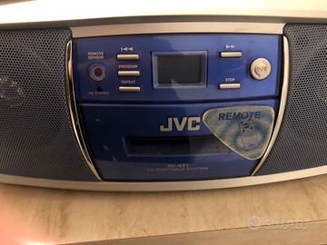 Musicassette marca JVC con telecomando, funzione lettore cd, cassette e radio
