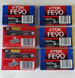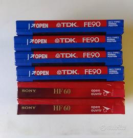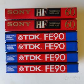 set di musicassette audio vergini in confezioni sigillate, due Sony HF 60 e quattro TDK FE90.
