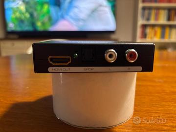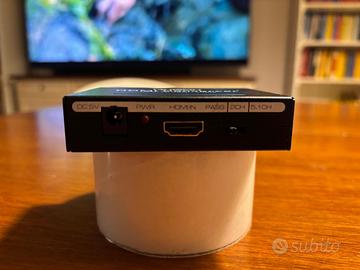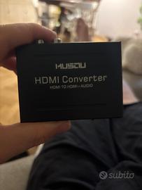 Vendo convertitore MUSOU HDMI Converter, utile per estrarre l'audio dal segnale HDMI senza perdere la qualità video. • Ingresso HDMI •Uscita HDMI + audio (ottico / RCA / jack a seconda del modello) •Compatibile con TV, console, PC, decoder, lettori Blu-Ray, soundbar, impianti stereo • Plug & Play, facile da usare Condizioni: ottime, usato pochissimo. Pertettamente tunzionante Ritiro a Roma zona Eur o spedisco