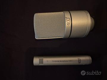 Microfono a condensatore pari al nuovo, usato 3 volte e riposto con cura. vendo causa inutilizzo. Compreso anche microfono per registrare chitarra acustica.