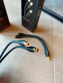 N.2 Cavetti lunghi 15cm per sdoppiare il segnale da singolo RCA Mono Maschio a RCA Stereo Femmine (ogni cavetto ha un connettore Maschio RCA e due connettori Femmina RCA) modello Audioquest M22F FLX C. Nuovi in scatola