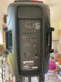 N. 2 CASSE ATTIVE Gemini AS15 TOGO Amplificate da 2000W (picco), 500W (RMS) alimentate e corrente di rete ma anche a batteria (DURATA 4 ORE A BATTERIA)