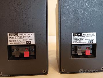 Coppia di altoparlanti stereo a 2 vie TEAC modello LS-X5. Mini diffusori da parete o scaffale in metallo con staffe originali. Per le specifiche vedi targhette in foto.