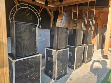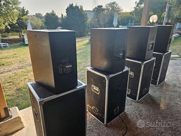 N.4 diffusori passivi Martin audio CT2 con amplificatore lab gruppen FP2600, anche qui fornisco i cavi speakon lunghi, e i flycase per tutto