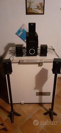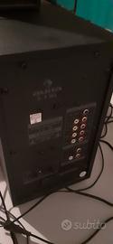 N.5 casse con subwoofer Auna. Tutto collegato in quanto ne abbiamo testato il funzionamento