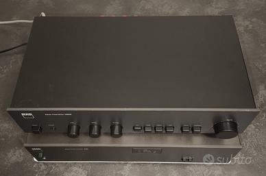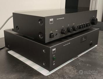 In vendita coppia di preamplificatore e finale Nad degli anni '90. Sono due apparecchi di chiara impronta inglese minimali nel look ma molto ben suonanti. Il pre, oltre al resto, ha ingresso phono con scelta MM e MC, con 3 valori di carico testina. Il finale spinge con 55 watt di potenza (è la sezione di potenza degli integrati 3155 e 7155) Condizioni estetiche e tecniche ottime, funziona tutto correttamente. Poca spesa, tanta resa. 13kg di peso la coppia.
