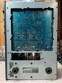 È stato interamente smontato e lavato accuratamente in ogni sua parte (solito lavoro che eseguo anche per visionare meglio le condizioni), compreso l’intero frontalino e il suo telecomando, anch’esso aperto e lavato. Ho eseguito un ottimo recap su tutta l’alimentazione e anche sul segnale con condensatori di alto livello (Rubycon, Chemi, Panasonic e Nichicon) da 105°, bassissimo ESR, fino a 10000ore con correnti elevate. Gli originali soliti su questi NAD sono da 85° fino a 3000ore con correnti di molto inferiori.