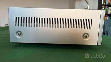 Amplificatore integrato NAD C352 in ottime condizioni sia estetiche che funzionali. Colore grigio chiaro. Completo di telecomando originale e cavo di alimentazione. Presenta un piccolo segno sul pannello laterale a destra visibile in foto.
