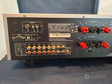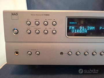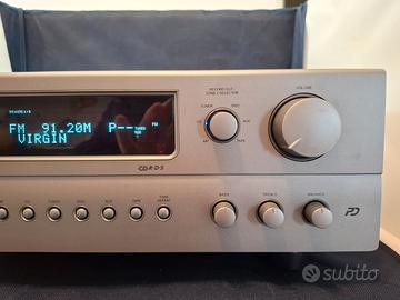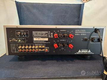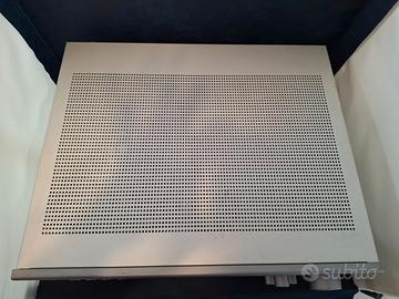 OTTIME CONDIZIONI PERFETTAMENTE FUNZIONANTE, CON QUALCHE SEGNO ESTETICO COMPRESO TELECOMANDO COMPATIBILE Informazioni Tel_Wha tsApp 328_96_ 42_6_12 Specifiche Gamma di sintonia: FM, MW Potenza d'uscita: 50 watt per canale su 8Ω (stereo) Risposta in frequenza: da 20Hz a 20kHz Distorsione armonica totale: 0,02% Fattore di smorzamento: 110 Sensibilità d'ingresso: 250mV (linea) Rapporto segnale/rumore: 107dB (linea) Impedenza di carico degli altoparlanti: 4Ω (minima) Dimensioni: 435 x 133 x 350mm