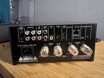 NAD M10 prima versione perfetto neanche un graffio, usato pochissimo ottima capacità di pilotaggio server di rete, streamer, radio etc scatola originale con cavo alimentazione e pendrive in dotazione prezzo non trattabile (già ribassato 4 volte) consegna da Sarzana a Firenze gratuita oppure spedisco CARATTERISTICHE ; -BluOS Streaming Amplifier - HybridDigital nCore Amplifier - Continuous Power: 100W into 8/4 Ohms -Dynamic Power: 160W into 8 Ohms 300W into 4 Ohms - 32-BIT/384kHz ESS Sabre DAC - 1GHz ARM® CORTEX A9 Processor - Dirac Live Room Correction* -Color LCD display - Supports Amazon Alexa & Google Assistant Voice Control Skills - AirPlay 2 Integration - Supports Siri Voice -Assistant via AirPlay 2 - Two-way Qualcomm aptX HD Bluetooth - NFC Bluetooth pairing for compatible smart devices - BluOS multi-room compatible - Gigabit Ethernet - HDMI eARC, USB Type A Input - Stereo Line Inputs, Coax/Optical Inputs - Preamp Output, Dual Mono Subwoofer Output IR Input , 12V Trigger Out -Apps for iOS, Android, Mac OS, Windows, Crestron, Control4, RTI, URC, Elan, Lutron, iPort -Wide variety of premium music services supported in App, including Amazon, Spotify, Tidal, TuneIn, Napster, Deezer, Qobuz and many others