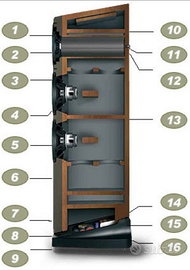 - Sistema di sospensione con molla a balestra per evitare colorazioni nelle basse frequenze.