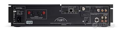 Vendiamo NAIM UNITI STAR usato, ma pari al nuovo. Condizioni perfette. Imballo originale in condizioni eccellenti. Cliente che immediatamente dopo l'acquisto ha subito cambiato per progetto diverso; di fatto parliamo di un apparecchio con 10 ore di lavoro scarse. Acquistato nel settembre 2025 e con estensione della garanzia a 3 anni. Descrizione del prodotto: sistema all-in-one con lettore CD utilizzabile anche per rippare i CD, amplificatore da 70W per canale in classe A/B. Può riprodurre, rippare e archiviare una collezione musicale e fare da server per altri dispositivi di rete, streaming musicale ad alta risoluzione, multiroom fino a 6 Uniti in rete, migliora in modo importante la qualità audio del TV o della consolle per videogame. App Naim gratuita per iOS NEW e Android per controllare tutte le sorgenti da un unico dispositivo. Ingressi Audio: 2 x optical TOSLink – 2 x coaxial RCA – 1 x BNC – 1 x HDMI ARC – 1 x RCA – 1 x 5-pin DIN – 2 x USB Type A – 1 x SD Card; Uscite Audio: 1 x finale stereo – 1 x RCA sub/pre – 1 x cuffie 3.5mm; Streaming: Google Cast for Audio, Airplay, TIDAL, Spotify Connect, Bluetooth (AptX HD), iRadio, UPnPTM; Memorizzazione locale: USB o SD card