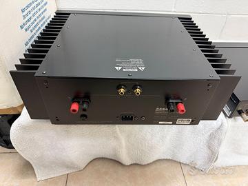 perfettamente funzionante e in buone condizioni estetiche, immagine presa in rete foto e video agli interessati. Solo ritiro di persona con prova e visione, non posso valutare permute. Finale di potenza PA 5 Specifiche tecniche Potenza di uscita: 100 watt per canale su 8Ω (stereo) Risposta in frequenza: da 7Hz a 150kHz Distorsione armonica totale: 0,1% Fattore di smorzamento: 60 Sensibilità di ingresso: 1,4 V Rapporto segnale/rumore: 120 dB Impedenza del carico degli altoparlanti: da 4 a 16 ohm Semiconduttori: 20 transistor Dimensioni: 435 x 135 x 368 mm Peso: 16 kg Circuitazione Stasis progettato da Nelson Pass Il circuito Stasis è un circuito di amplificazione a stato solido progettato da Nelson Pass. Il circuito è caratterizzato da un’elevata linearità e un basso rumore. Preamplificatore CA5 Frequency response: 1.5Hz to 100kHz Total harmonic distortion: 0.002% Input sensitivity: 0.17mV (MC), 2.4mV (MM), 200mV (line) Signal to noise ratio: 72dB (MC), 81dB (MM), 90dB (line) Channel separation: 66dB (MM), 62dB (MC), 74dB (line) Output: 200mV (line), 2V (Pre out), 16V (Pre out Max) Dimensions: 435 x 63 x 289mm Weight: 3.7kg