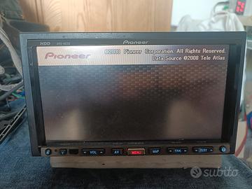 PIONEER RADIO CD DVD NAVIGATORE MAP DTB 2 DIN HDD AVIC-HDII. È stato collegato ad un alimentatore 12 volt per poter fare delle foto dettagliate anche da acceso. Presenta problemi al meccanismo di ribaltamento frontalino e al touch screen in quanto anche premendo il tasto "OK" che si vede nelle foto sembra non prenda l'impulso. Per questo motivo lo vendo come non funzionante e/o per parti di ricambio e riceverete esattamente tutto quello che si vede nelle foto. Non si accettano resi, contestazini o lamentele. L'oggetto viene venduto esattamente come in foto allegate, completo di gabbia metallica per il fissaggio,mascherina anteriore di copertura, adattatore spinotto antenna, spinotto alimentazione (anche se non si vedono in foto). Grazie.
