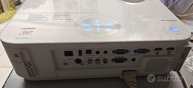 Lampada con 2000h circa al 51% Manca il telecomando. Luminosità proiettore3300 ANSI lumen Tecnologia di proiezioneDLP Risoluzione nativa del proiettoreXGA (1024x768) Rapporto di contrasto10000:1 Rapporto d'aspetto nativo4:3 Rapporti d'aspetto supportati4:3, 16:10, 16:9 Compatibilità dimensione schermo1524 - 3810 mm (60 - 150") Proiezione a distanza oggettiva0,68 - 1,76 m Numero di colori1,073 miliardi di colori Intervallo di scansione verticale50 - 120 Hz Sincronizzazione verticale (max)120 kHz Sorgente luminosa Tipo di sorgente luminosaLampada Durata della sorgente luminosa5500 h Durata della sorgente luminosa (modalità risparmio)8000 h Potenza della lampada270 W Potenza lampada (modalità economica)162 W Quantità lampade1 lampada(e) Sistema di lente Messa a fuocoManuale Lunghezza focale fissa6,5 mm Range di apertura (F-F)2,4 - 2,4 Zoom fotocameraSì Tipo di zoomManuale Rapporto di Zoom1.2:1 Rapporto di proiezione0.56:1 Video Full HDSì Compatibilità 3DSì 3D ReadySì Formati 3D supportati Elaborazione video10 bit Connettività Quantità porte VGA (D-Sub)2 Quantità porte HDMI2 Tipo di connettore HDMITaglia piena S-Video in0 Quantità porte USB 2.02 Quantità di porte USB 3.2 Gen 1 (3.1 Gen 1) di tipo A0 Ingressi audio (L,R)1 Uscite per cuffie1 Microfono, spinotto d'ingressoSì Tipo interfaccia serialeRS-232 Ingresso audio per PCSì PC in (D-Sub)Sì Connettore USBUSB tipo A, USB di tipo B Collegamento ethernet LANSì Emissione acustica30 DB On Screen Display (OSD)Sì Sync-on-green (SOG)Sì Protezione della passwordSì Multimediale Altoparlanti incorporati Tipo di prodottoProiettore a corto raggio Posizionamento di mercatoPortatile InstallazioneDesktop, Soffitto Risoluzione (digitale massima)1920 x 1080 Pixel