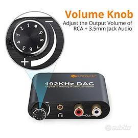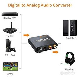 •【DAC Convertitore】Converte Coassiale Ottico Digitale o Toslink ad Analogico RCA L/R Audio e Collega con un Dispositivo Esterno come Amplificatore via 3,5mm Cavo Auricolari