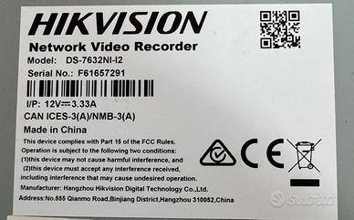 Network Video Recorder Hikvision Modello DS-7632NI-12 Usato 1 anno, condizioni pari al nuovo, vendo per chiusura attività.