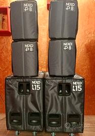 EURO 11.999,00 NEXO impianto completo audio usato una sola volta disponibile per essere visionato e provato cosi’ composto: N. 4 NEXO P8 TOURING N. 4 NEXO CUSTODIE IMBOTTITE PER NEXO P8 N. 2 NEXO SUB P15 TOURING N. 2 NEXO CUSTODIE IMBOTTITE PER SUB P15 N. 2 NEXO SKATE CON RUOTE PER SUB P15 N. 1 NEXO AMPLI DTD AMP. 4X1.3 N. 1 NEXO PROCESSORE DTD-T Sono a disposizione, non esitate a contattarmi rispondendo direttamente alla e-mail solo se veramente interessati. Non sono interessato a scambi o permute di materiale. Grazie.