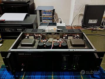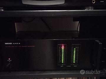 Finale a mosfet dual mono, costruito dalla Nikko alla fine degli anni 80, 2x80 watts su 8 ohms, credo che di watt ne dia di più, pilota anche diffussori ostici, perfettamente funzionante, tranne per la lucetta rossa picco del canale destro perchè fulminata, abito in condominio e sento sempre lo stereo a basso volume. Preferirei il ritiro diretto con la possibilità d'ascolto, il finale pesa più di 15 kg.