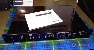 Eccezionale preamplificatore della Nikko costruito alla fine degli ani 80, suono puro e dettagliato, si possono collegare 2 giradischi, lo vendevono accopiato al finale Nikko Alpha III a mosfet, l'unica cosa, come potete vedere dalla foto, in un lato del coperchio c'è un pochino rovinata la vernice, per il resto è tutto apposto.