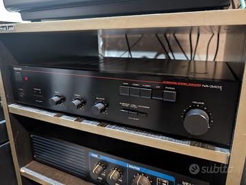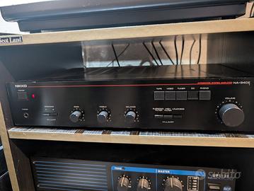 Vendo splendido Nikko NA340ii, prodotto dal 1986 al 1988 ovviamente in Giappone, sinonimo di qualità. Tenuto ottimamente e perfettamente funzionante. Capace di 30watt RMS su 8 ohm per ogni canale. Abbinato a casse anche abbastanza ostiche le pilota senza grossi problemi. I 30 watt dichiarati dalla casa madre sono assolutamente reali. Ovviamente si possono collegare 2 coppie di casse e selezionarle indipendentemente. In quel caso dovrebbe erogare circa 45 watt RMS per canale. Qualche anno fa é stato revisionato dal famoso Esoteric Hi-Fi.