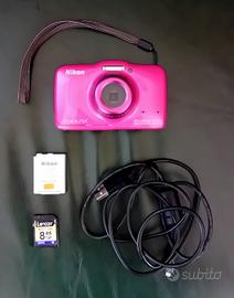 -Nikon Coolpix S32 Subacquea rosa usata in ottime condizioni sia fotografiche che video.