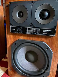 casse audio Nordmende lb1050 della serie Philharmonic hi-fi system, in perfette condizioni, suono cristallino, woofer 25cm, midrange e tweeter a cupola, mobili di legno vero e reti para polvere in ferro, tutto originale. spedizione possibile con spesa a parte.