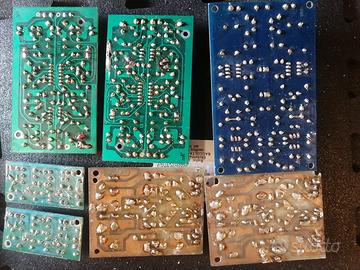Schede varie di vecchi kit di nuova elettronica, erano tutti funzionanti, amplificatore per cuffie a mosfet, amplificatori ad hexfet, preamplificatore, sfasatori di segnale a ponte,vendo in blocco ad un prezzo che è solo la metà del l'amplificatore per cuffie