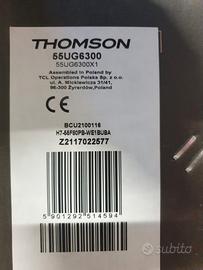 Nuovo, non usato, non aperto e non danneggiato. Prezzo in negozio e online 486 euro. Thomson G63 Series 55UG6300 TV 139,7 cm (55") 4K Ultra HD Smart TV Wi-Fi Nero Risoluzione del display: 3840 x 2160 Pixel, Tipologia HD: 4K Ultra HD, Tecnologia display: LCD, Forma dello schermo: Piatto, Tipo di retroilluminazione LED: Direct-LED. Smart TV. Tecnologia di interpolazione del movimento: PPI (Picture Perfomance Index) 1400, Luminosità schermo: 280 cd/m², Tempo di risposta: 30 ms, Rapporto d'aspetto nativo: 16:9. Formato del segnale digitale: DVB-C, DVB-S2, DVB-T2. Wi-Fi, Collegamento ethernet LAN. 3349330715