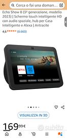 NUOVO Echo Show 8 3ª GENERAZIONE + SUPPORTO REGOLABILE con Porta USB-C ( LA VISUALE È MIGLIORATA E L'ACUSTICA IMPLEMENTATA) + 2 PROTEZIONE IN VETRO PER DISPLAY, DA GRAFFI,IMPRONTE E POLVERE. PREZZO ATTUALE 170€. VENDITA IN SOLO 158€. NON TRATTABILE CON 45 EUR. DI ACCESSORI INCLUSI OMAGGIO L'Echo Show 8 3ª Generazione offre un’audio spaziale migliore, che avvolge la stanza con un suono più fedele, chiamate più nitide grazie alla videocamera centrale con inquadratura automatica e una gestione migliore della Casa Intelligente grazie all’hub per Casa Intelligente integrato. Il tutto su uno schermo touch HD da 8”.Riproduci i tuoi brani preferiti in loop, chiama senza utilizzare le mani, riguarda vecchie fotografie e ottieni aggiornamenti sulla tua casa. Basta semplicemente una parola.L’audio spaziale riempie l'area circostante mentre la tecnologia di regolazione analizza automaticamente l'acustica della stanza, adattando la riproduzione al meglio. Che si tratti di serie TV o della musica che ami: un suono sempre ricco, indipendentemente da quello che stai ascoltando.Associa e controlla i dispositivi compatibili con Zigbee, Matter e Thread, senza utilizzare un hub separato. Gestisci videocamere, luci e molto altro tramite lo schermo touch o la tua voce. Imposta delle routine o avviale con i movimenti.Effettua videochiamate grazie a una videocamera centrale da 13 MP con inquadratura automatica e alla tecnologia di riduzione del rumore. Il widget Contatti principali ti consente di visualizzare facilmente i dispositivi di casa e i tuoi contatti, così potrai comunicare rapidamente con gli amici e i familiari che possiedono l'app Alexa o un dispositivo Echo con schermo. Chiama con un tocco o utilizza Live View per controllare la tua casa mentre sei via.Per i Moderatori di Subito.it, Il venditore dichiara che i beni in oggetto del presente annuncio sono originali.Per altre info o Foto, contattami senza impegno. 😉 Tel. WhatsApp 3803497777