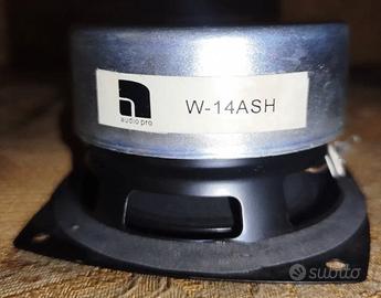 Vendo questo Speaker Audio Pro W-14ASH NUOVO. E' stato testato e si sente bene, ha solo quella membrana in parte rientrata, purtroppo si è creata nel maneggiarla e non essendo pratico non sono in grado di sistemarla. Nuova con Difetti, Perfettamente funzionante ed Originale. MISURE: Lato x lato 8cm x 8cm Diamentro inferiore 7cm Altezza 5cm