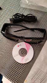 Occhiali 3D Active Shutter LG AG-S250 per televisori HD al plasma 3D LG del 2011.Nessun difetto,completamente nuovi mai usati Grazie alle batterie ricaricabili non avrai mai bisogno di sostituire le batterie, basta semplicemente collegarle alla porta USB del televisore Comodo e leggero per ore di piacevole visione. Questi occhiali sono compatibili con la famiglia