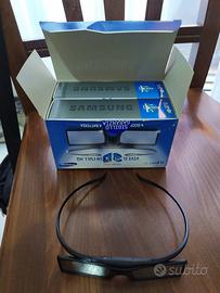 Occhiali 3d attivi Samsung per il 3d stereoscopico. Gli occhiali hanno il bluetooth incluso e vengono usati per i televisori Samsung o con tecnologia compatibile. Dalle foto, noterete che del pacco di 4 occhiali solo uno è stato usato, gli altri sono ancora in confezione originale e contengono la batteria originale, manuale, e panno per pulire le lenti. Prodotto acquistato nel 2013, ho ancora lo scontrino. In caso di dubbi contattatemi su subito. Prezzo trattabile.