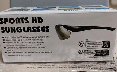 Occhiali da Sole unisex con videocamera integrata HD 1080 CAM polarizzata sportiva, supporto con micro SD integrata, ideali all'aria aperta, ideali per registrare ogni esperienza sportiva o dinamica prodotto nuovo in confezione originale