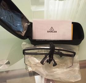 Occhiali di sicurezza laser Glendale NUOVI e MAI USATI completi di custodia con cerniera, panno per la pulizia e cordino salva caduta per il collo - LOTG-CO2 codice 1177 VLT. Occhiali protettivi in policarbonato trasparente con lenti resistenti agli urti per la protezione degli occhi. Protezione completa per gli occhi anche lateralmente, le asticelle sono pieghevoli e regolabili per un confort totale. Inoltre, questi occhiali impermeabili e resistenti agli urti possono anche bloccare efficacemente polvere, sabbia e vento, dando agli occhi un ambiente sicuro e confortevole. Il corpo degli occhiali di sicurezza trasparenti è realizzato in policarbonato ad alte prestazioni con resistenza agli urti, in particola modo sulla parte frontale grazie alla sua protezione in policarbonato rinforzato. Discreto e leggero, offrendo abbastanza flessibilità per consentire a questi occhiali di sicurezza di proteggere qualsiasi dimensione della testa. Il designer con cui sono realizzati permettono di avere abbastanza spazio all'interno degli occhiali per poter indossare altri tipi di occhiali. Adatti per qualsiasi tipo di attività interne da laboratorio, si tratta di un paio di occhiali di sicurezza da laboratorio scientifico anti-laser, ed esterne, come la lavorazione dei metalli, saldatura, lavorazione del legno ecc.