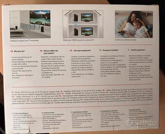 One For All HDMI Sender mod. SV 1760. Permette di collegare e controllare dispositivi AV tramite wireless. Plug & play. Visibilità sino a 30 mt, 10 in presenza di soffitto o parete. Praticamente come nuovo. Imballo originale.