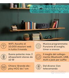 oneConcept Radio Portatile, Radio DAB con Bluetooth e Lettore CD, Radio FM/DAB/DAB+ Digitale, Sistema Stereo AUX, Display HCC, MP3 e Streaming, Sveglia, Telecomando, Radio Portatile Bluetooth Vintage