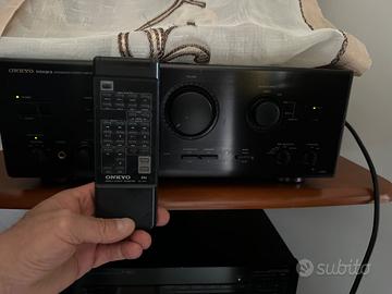 Amplificatore integrato Onkyio A 809 tenuto in modo maniacale perfettamente funzionante unico proprietario mai stato riparato. Telecomando originale