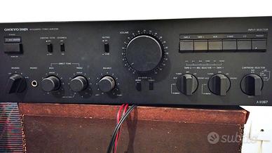 Amplificatore integrato ONKYO INTEGRA A-8067. Potenza 135+135 watt su 4 Ohm, 85+85 Watt su 8 Ohm- Risposta 2-50.000Hz - distorsione <0,015%- Misure 43x39,5x14 cm (h)- Peso 12 KG. Amplificatore di classe superiore e eccellenza, oggetto ricercato, per intenditori e amanti musica. anni '90. Visibile e controllabile a Bologna città su appuntamento. Prezzo trattabile se interessati.