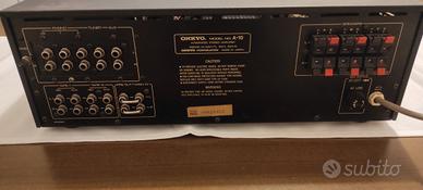 amplificatore integrato Onkyo model A 10. 85 watt rms per canale e 18 kg di peso. configurazione in dual mono. perfettamente funzionante ed esteticamente in ottime condizioni.