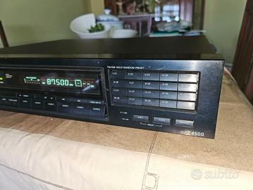Il sintonizzatore Onkyo Integra T-4500 è del 1989 e descritto come dotato di "3-Mode APR System", Cable Fine Tuning e 40 stazioni memorizzabili.