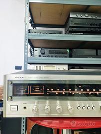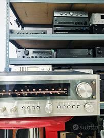 L'Onkyo TX-4500 è una vera leggenda dell'epoca d'oro dell'hi-fi (metà anni '70). Il Carattere Sonoro: "Muscoloso ma Raffinato". A differenza dei Pioneer dell'epoca (spesso brillanti e taglienti) o dei Marantz (famosi per il calore "avvolgente"), l'Onkyo TX-4500 si colloca in una via di mezzo estremamente bilanciata:. Ha una riserva di potenza incredibile. I suoi 55-60 Watt per canale dichiarati sembrano molti di più all'atto pratico. I bassi sono profondi, frenati e hanno un "impatto" fisico che raramente si trova negli amplificatori moderni di pari fascia. Le voci sono riprodotte con una chiarezza superba. Non sono "colorate" eccessivamente. Alti Morbidi: Non è mai affaticante. Anche dopo ore di ascolto, le alte frequenze restano setose e mai vetrose. NB Il prezzo basso è dovuto alle serigrafie sbiadite, per il resto è in ottime condizioni e perfettamente funzionante. SPECIFICHE TECNICHE Gamma di sintonizzazione: FM, MW Potenza d'uscita: 55 watt per canale su 8Ω (stereo) Risposta in frequenza: da 15 Hz a 30 kHz Distorsione armonica totale: 0,1% Fattore di smorzamento: 50 Sensibilità di ingresso: 2,5 mV (MM), 150 mV (linea) Rapporto segnale/rumore: 65 dB (MM), 80 dB (linea) Uscita: 150 mV (linea), 1 V (uscita preamplificata) Semiconduttori: 1 x FET, 70 x transistor, 8 x IC, 59 x diodi Dimensioni: 583 x 163 x 430 mm Peso: 16,6 kg - Possibilità di prova presso la mia sala d'ascolto - Spedizione in tutta italia a carico dell'acquirente -Guarda altri miei annunci (amplificatore, sub woofer , giradischi, radio tuner, lettore cd dvd, piastra cassetta, casse diffusori, dac, preamplificatore e finale, home theatre, surround) potresti trovare ciò che cerchi