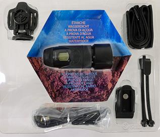 Accessori inclusi nella confezione: supporto per manubrio, fasce in velcro e in gomma, cavo USB e cavo AV, batterie, supporti per webcam