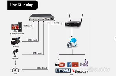 Video Encoder vendo per inutilizzo , ottimo per streaming , sia pc , drone, telecamere , etc, come da foto da esempio ,facile di istallazione e con accesso a ip locale per riprese live per piu dispositivi ,prezzo leggermente trattabile , prodotto funzionante al 100 % solo per persone addetti al lavoro ,Tecnici video e appassionati .