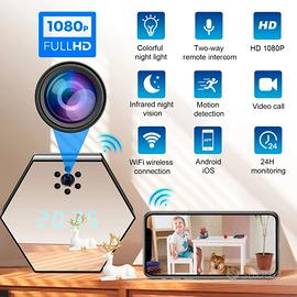 Visione notturna, app per dispositivi mobili, rilevamento del movimento, progettato per smartphone Android e iPhone, streaming audio e video in diretta, registrazione su scheda SD, archiviazione cloud e accesso remoto! Visione notturna: la telecamera è dotata di 6 luci per la visione notturna, con una portata fino a 10 metri. Rilevamento del movimento. Funzione di registrazione in loop. Audio bidirezionale Raccolta vocale omnidirezionale a 360 gradi Installazione versatile. Luce LED colorata: puoi cambiare il colore della luce nell'app. Sensore CMOS Pixel da 5 MP Scheda di memoria non inclusa > Risoluzione 1080P/720P/640P/320P > Formato video ASF > Numero di fotogrammi 25 > Angolo visivo 140 gradi > Rilevamento movimento Telecamera Riprese in linea retta 6 metri > Illuminazione minima 1 LUX > Capacità batteria 3500 mAh > Durata video Oltre 4 ore > Formato compresso H.264 > Area di registrazione 5 m > Consumo 240 mA/3,7 V > Temperatura di conservazione -20-80 gradi > Temperatura di esercizio -10-60 gradi > Umidità di esercizio 15-85% RH > Tipo di scheda di memoria Scheda TF > Capacità massima della scheda di memoria 32 GB > Software di riproduzione VLCPlayer/SMPlayer/AVI > Sistema operativo del computer Windows/Mac OS X > Sistema operativo del telefono cellulare Android/iOS > Browser web IE7 e successivi, Chrome, Firefox Spedisco se occorre e accetto Paypal Indico app per utilizzo